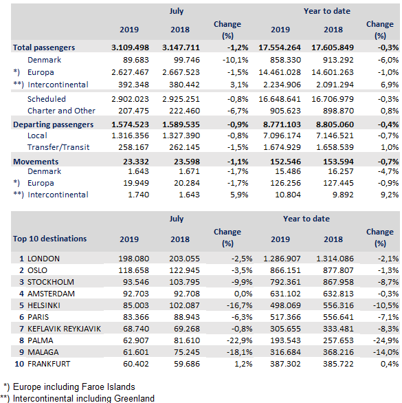 “We had a very busy month in July – first with the many travellers leaving for their holiday destinations and now with many of them returning from holiday. This resulted in 14 days during the month with more than 100,000 passengers passing through the terminals,” said Thomas Woldbye, CEO of Copenhagen Airport.