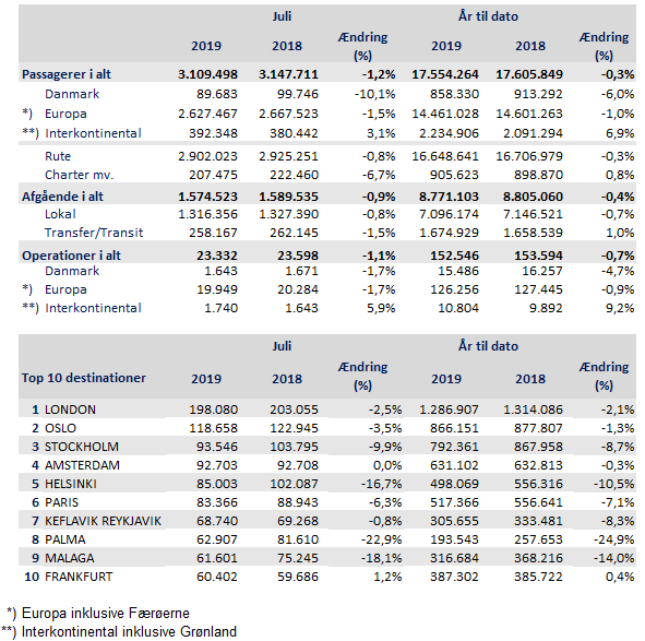 Samlet har der i de to første sommermåneder været 6.052.386 rejsende igennem lufthavnen. År til dato har 17.554.264 rejst til og fra CPH. Det er 0,3 procent færre end samme periode sidste år.