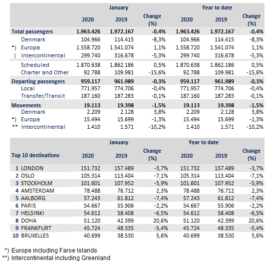 Aviation is under global pressure due to economic uncertainty, the corona virus, Brexit and the climate transition. In the first month of the year, Copenhagen Airport recorded a slight drop in traffic as the number of passengers declined by 0.4 per cent relative to January of last year.