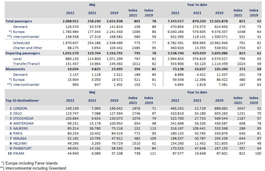 Several new records were set in May. Sunday 29 May was the busiest day since the pandemic struck with 85,413 passengers on the last day of the public holiday long weekend. And overall, with 2,068,912 travellers, May was also the busiest month since Covid-19 sent aviation into free fall. This places the passenger figure at index 78 compared to the pre-Covid benchmark.
