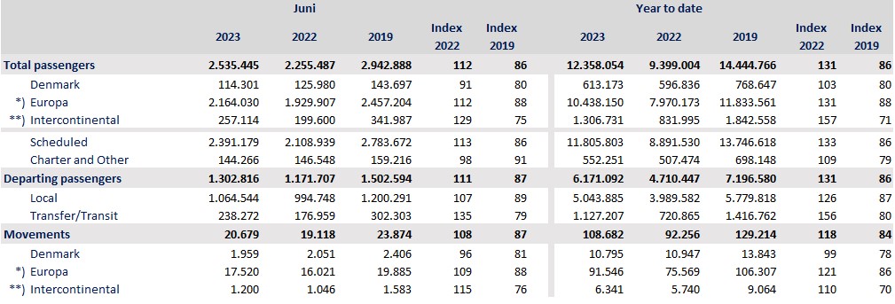 The summer holiday season is off to a brilliant start at Copenhagen Airport. A total of 2,535,445 passengers passed through the CPH terminals in June, which represents a 12 per cent year-on-year improvement.