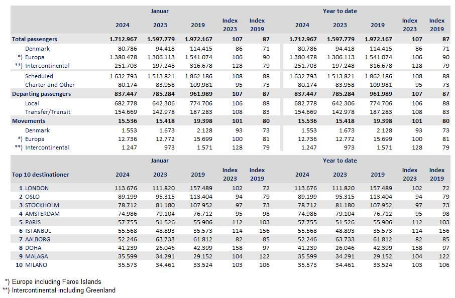 More than 1.7 million passengers passed through Copenhagen Airport during the opening month of 2024, a 7 per cent year-on-year increase. Long-haul destinations in Asia, the Middle East and North America saw strong passenger growth.