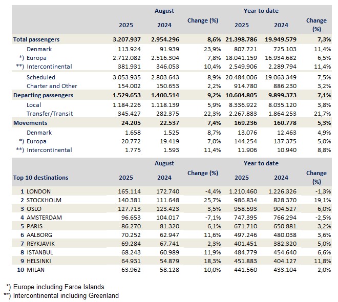 “Half of our passengers this summer were Danish and southern Swedish travellers flying, for example, to sunny southern European destinations. The rest were international travellers, many coming to enjoy their summer holidays in Copenhagen and the rest of Denmark, while others had a layover at Copenhagen Airport on their journey to destinations around the world,” says Krogsgaard.