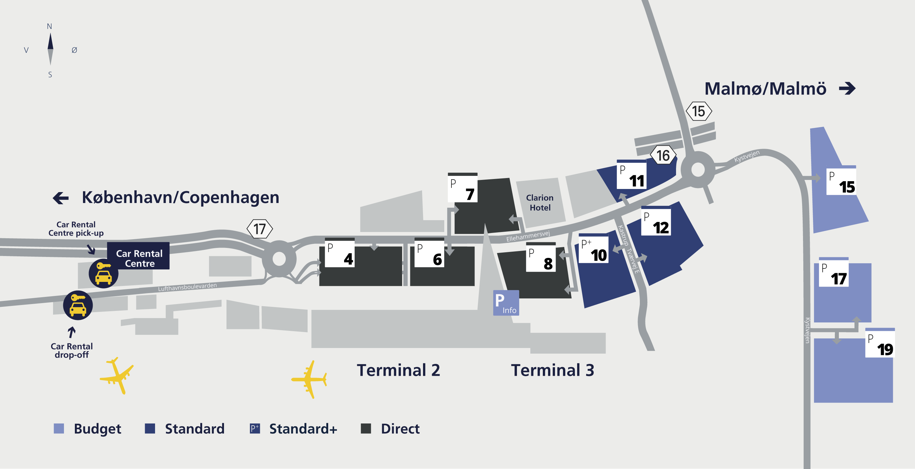 You will find the Avis office at our Car Rental Centre, located in the western part of the Copenhagen Airport. Free shuttle buses are available to transport you back and forth between our car rental offices and rental car parking areas.