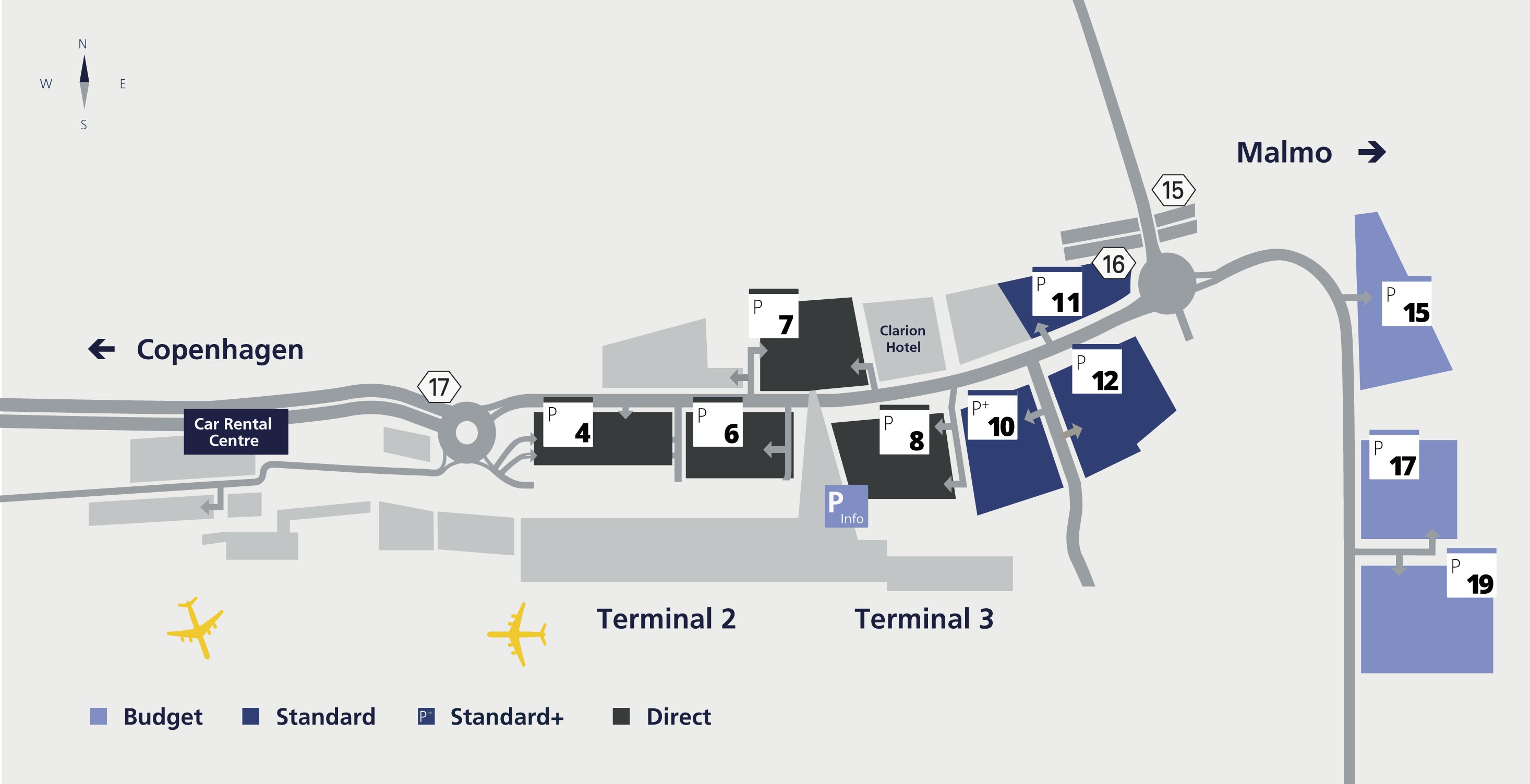 - You hand in your car in the parking facility P6, which is located right beneath the terminals