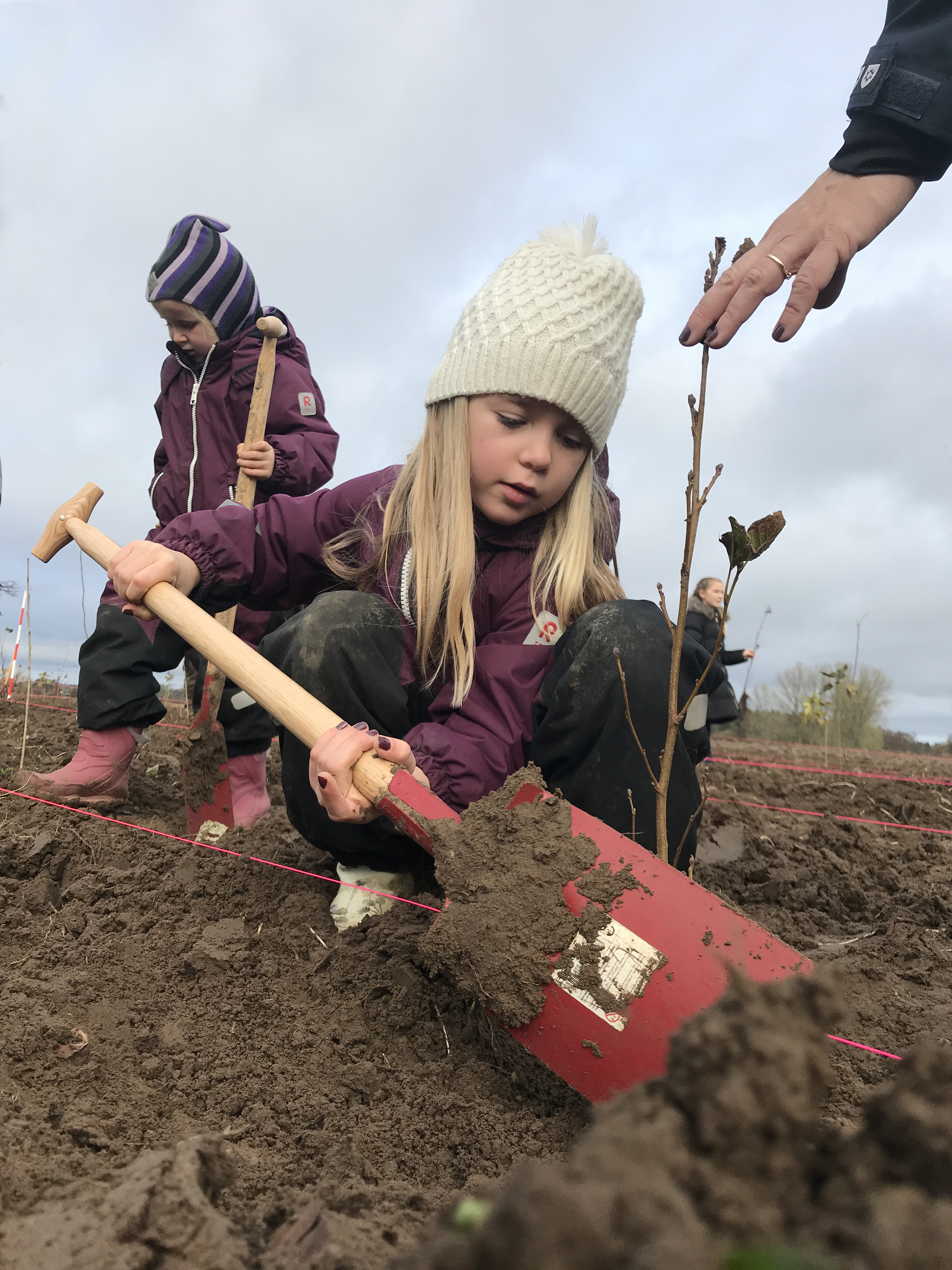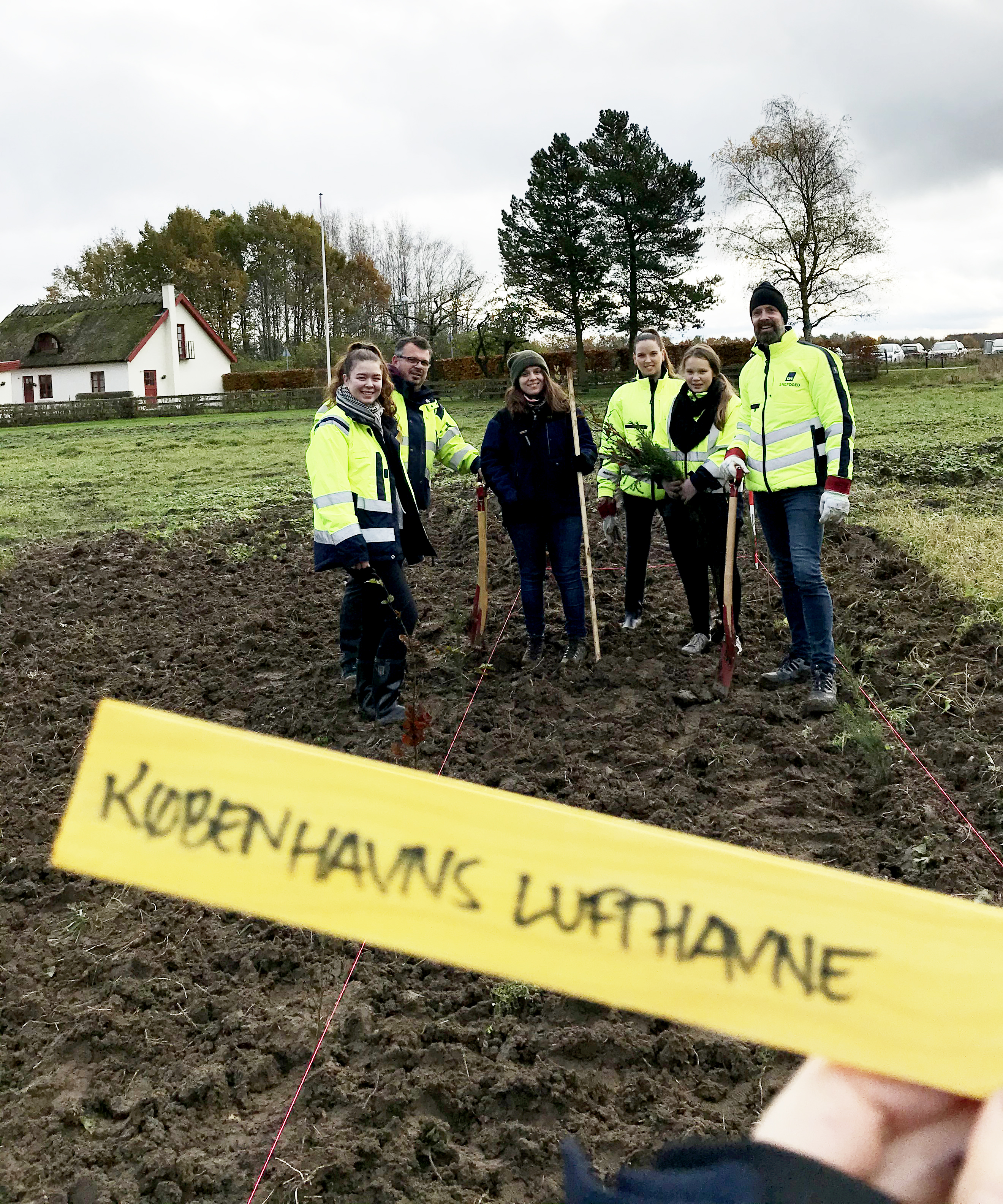 I søndags blev nogle af træerne plantet i Skævinge Folkeskov ved Hillerød. Omkring 20 medarbejdere fra Københavns Lufthavn var trukket i gummistøvlerne og havde taget deres familie under armen for at plante nogle af de 5000 træer, som Københavns Lufthavn har sponsoreret.