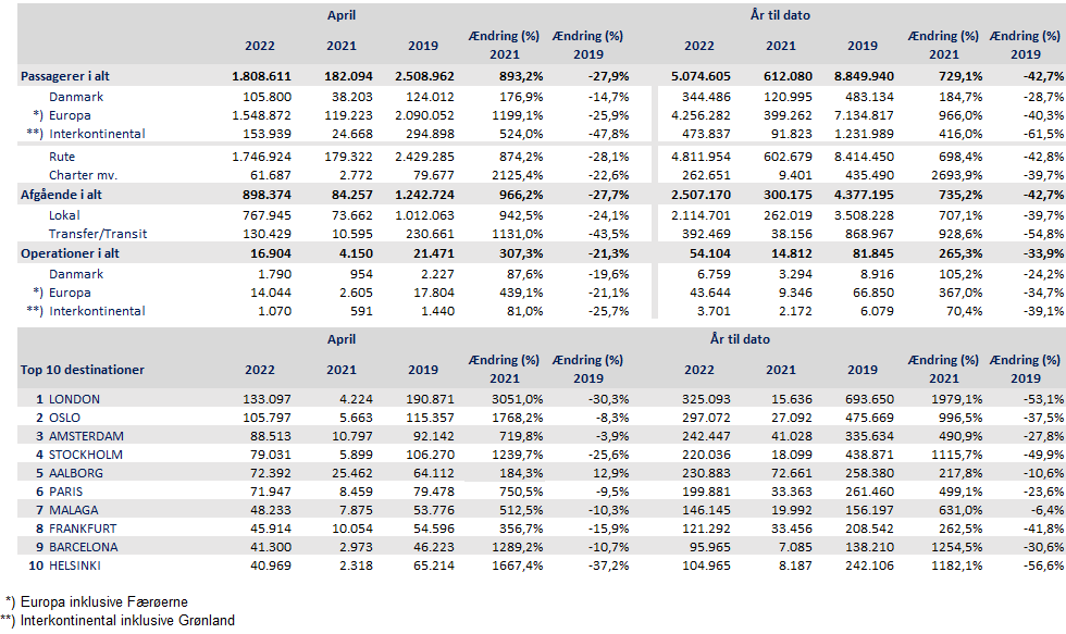 Trafiktallene for april viser, at det især er flyrejserne i Europa, der gør comeback. Her er flere end syv ud af ti rejsende tilbage i forhold til året inden pandemien. På de lange interkontinentale ruter til Asien og Nordamerika er fire ud af ti rejsende tilbage.