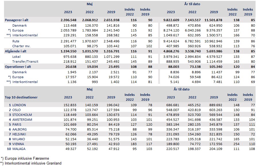 2.396.270 rejsende var igennem terminalerne i maj – en stigning på 415.000 i forhold til måneden før.
