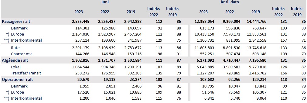 Sommeren er kommet godt i gang i Københavns Lufthavn. 2,535.445 millioner rerjste igennem terminalerne i juni, viser passagertallene. Det svarer til indeks 112 i forhold til sidste år.