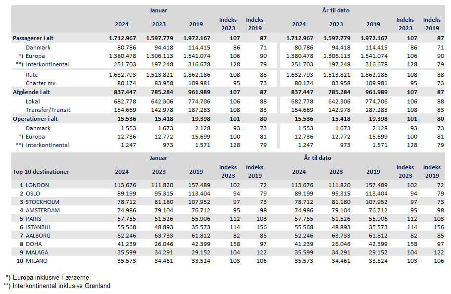 Flere end 1,7 millioner passagerer var gennem Københavns Lufthavn i årets første måned. Det er syv procent flere end samme tid sidste år, og der er markant fremgang for langdistanceruterne til både Asien, Mellemøsten og Nordamerika.