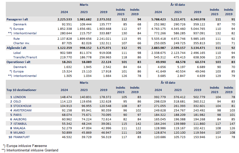 Flere end 2,2 millioner passagerer rejste via Københavns Lufthavn i marts. Det er 12 procent flere end sidste år, og fremgangen ser ud til at fortsætte hen over sommeren. Flyselskaberne har taget hul på sommerprogrammet, der samlet byder på knap 300 ruter fra København ud i hele verden.