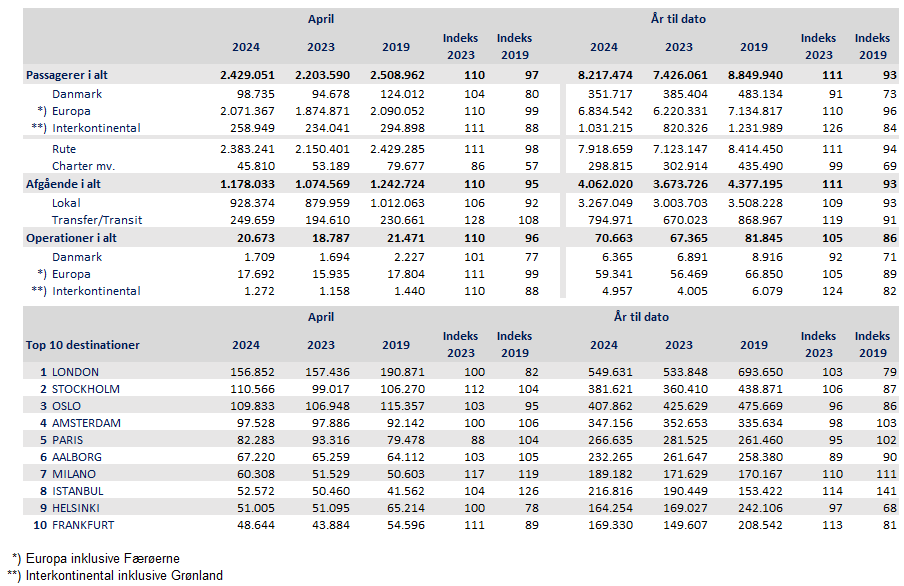 Forår, fridage og ferie. Rejselysten fortsætter, og i april var 2.429.051 passagerer gennem Københavns Lufthavn. Det er en stærk fremgang på mere end 10 procent i forhold til samme måned sidste år, hvor mange ellers rejste i forbindelse med påsken, der lå i april.