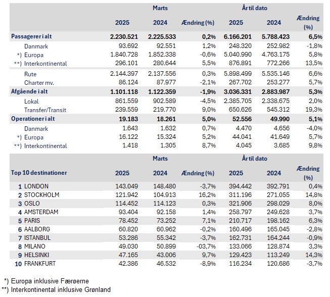 Foråret er kommet godt i gang i Københavns Lufthavn. I marts var 2,228 millioner rejsende gennem terminalerne i lufthavnen. Det er på niveau med samme måned sidste år – hvor påsken endda lå i marts modsat i år, hvor den ligger i april.
