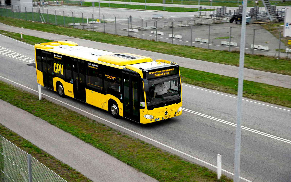 Når du har parkeret din bil, kan du køre gratis med terminalbusser hele døgnet rundt.