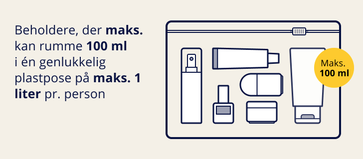 - Flydende toiletartikler som fx hårshampoo og tandpasta