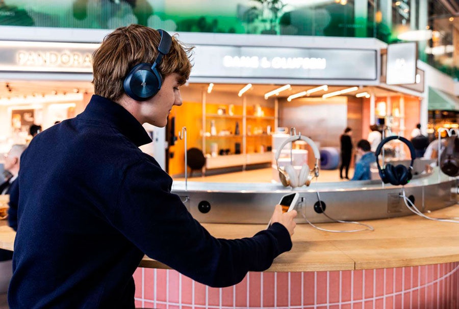 På torvet ved gates B foran Bang & Olufsen-forretningen er der et mindre område med siddepladser, hvor du også frit kan oplade dine devices.
